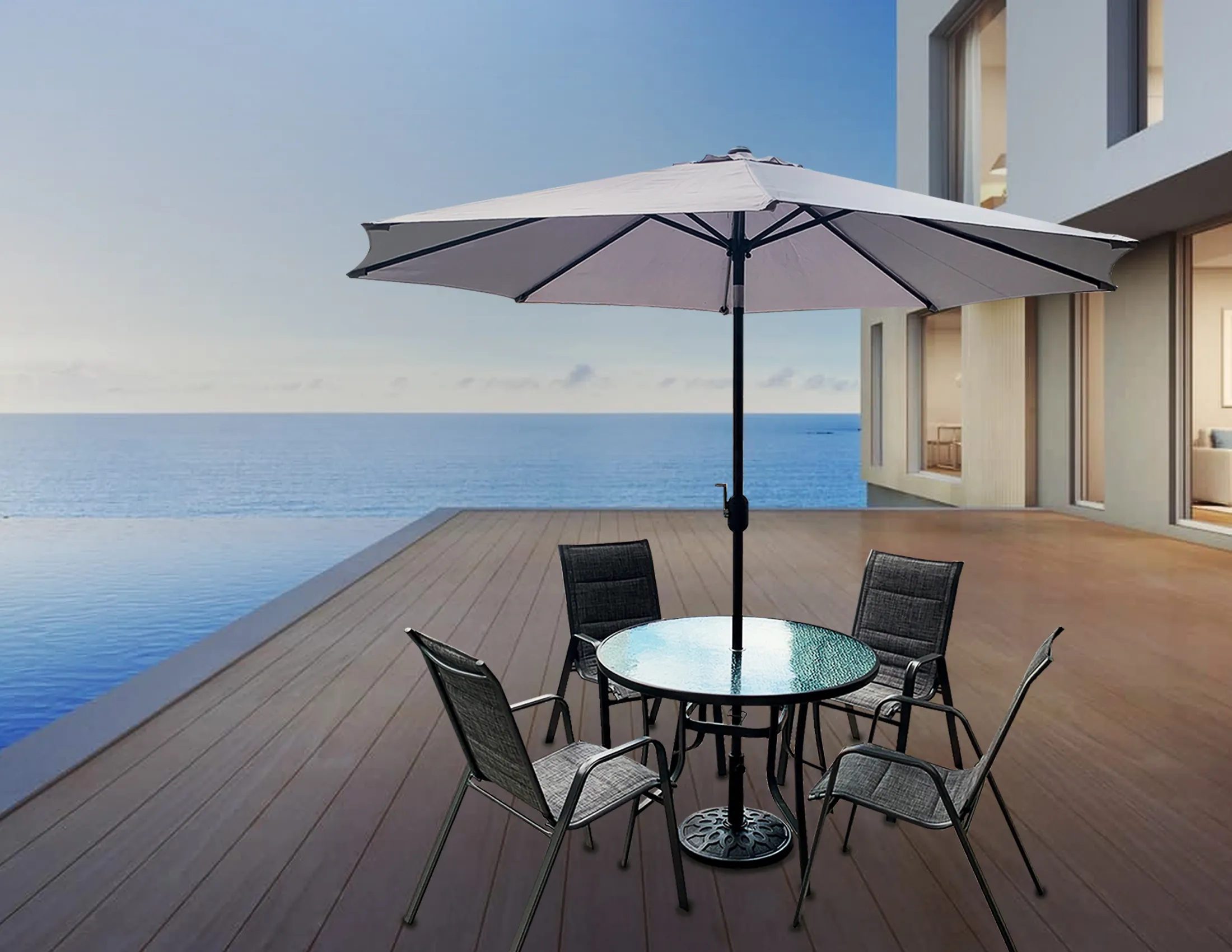 Hanover Monaco 5 Piece Outdoor Dining Set With Round Glass Top Table And Contoured Sling Stationary Chairs Umbrella And Base Mondn5pcg Su The Home Depot from images.homedepot-static.com Made of durable materials that stand up to the. Depending on the climate that you live in, it is very important to choose the appropriate product that can withstand all weather. Browse our outdoor umbrella buying guide to learn price points, specifications and how to tell a pulley patio umbrella from a crank lift.